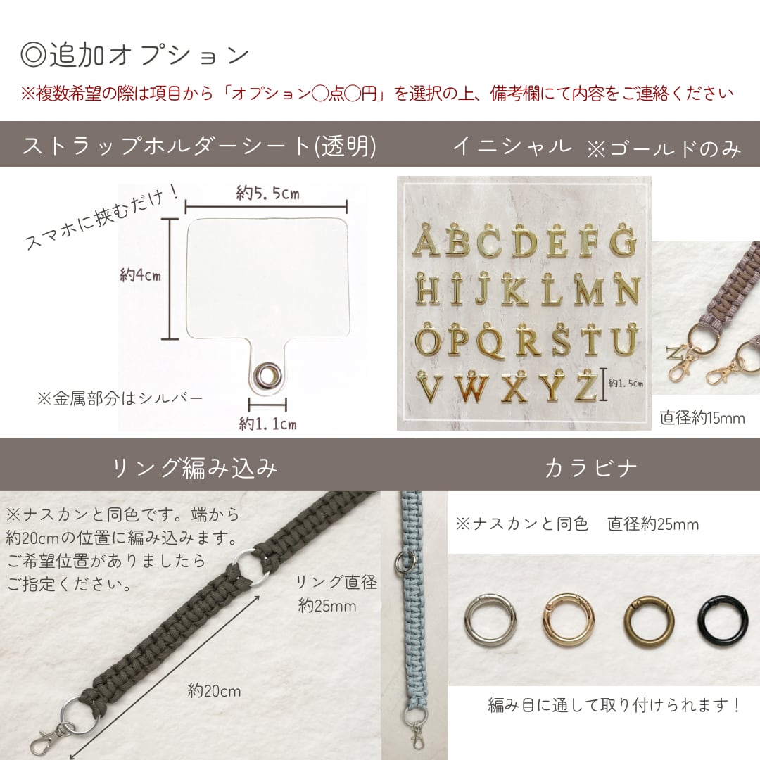 軽くて丈夫なパラコードで編んだショルダーストラップです。幅がしっかりあるので肩が痛くなりにくくおすすめÜ取り付け/取り外しも簡単なので、外出の時だけストラップを付けたい!という場合にも便利です♪
